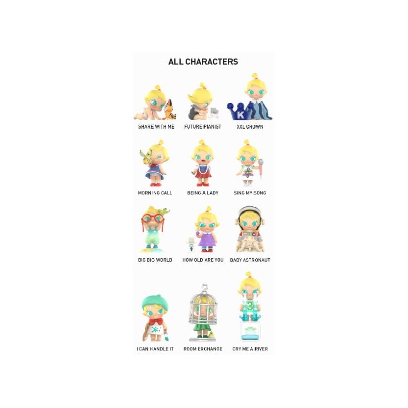 Chaque boîte contient 1 figurine aléatoire du personnage de Molly, parmi une collection de 12 figurines différentes.